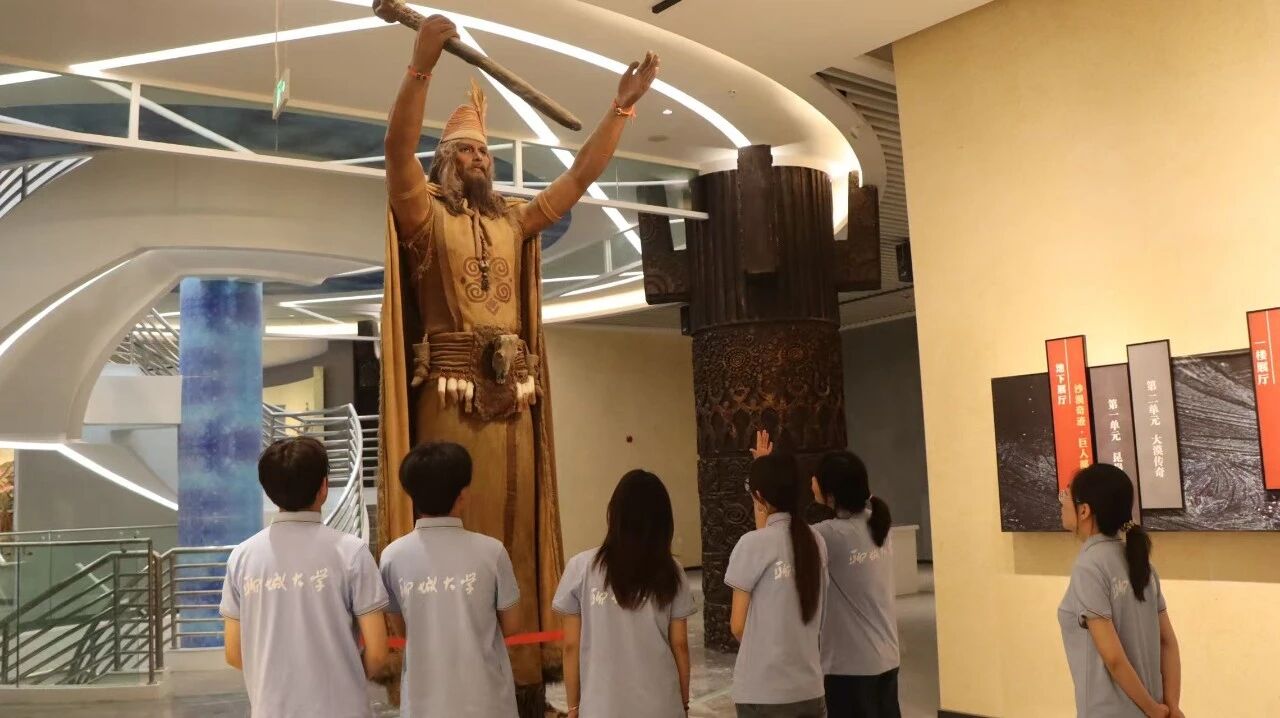 步入昆岗文化园主展馆,实践团成员立即被入口处高大的昆岗巨人雕像所震撼,随后,成员们参观了仿制的昆岗先民生活区,逼真的场景复原与生动的墙绘,将古代先民的生活图景直观呈现。等比塑造的打猎人像、精细还原的房屋搭建过程,让成员们深刻领略到先民的生存智慧和精湛技艺。实践团重点观摩了跨越数千年的出土文物,从原始石器、质朴陶器到精美铜器、华丽丝绸,这些无声的见证者生动勾勒出塔里木河流域璀璨的文明演进史。大家深刻认识到昆岗地区作为东西方文明交流枢纽的重要地位,这些珍贵的文物不仅是历史的印记,更是多元文化在此共生共荣的生动体现。